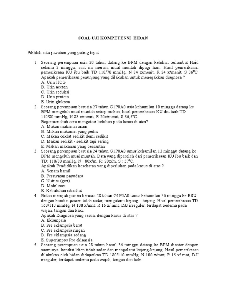 Contoh Soal Ujian Kompetensi Bidan : Soal Latihan Tes Kompetensi Bidang Bidan Kebidanan Pendidikan Kewarganegaraan Pendidikan Kewarganegaraan - Soal ukom bidan 2019 beserta kunci jawaban edisi 5 berikut ini telah kami siapkan untuk teman.