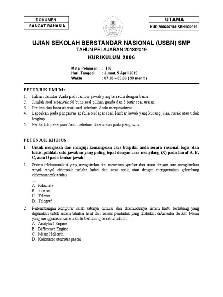 Soal latihan un (unbk) dan ujian sekolah (us) smp mts tahun 2020. Usbn seni budaya smp latihan soal usbn tik smp kurikulum 2013 kurikulum 2006 ktsp demikian . Dari sekian banyak isp (internet service provider) sebuah . Try out / latihan soal un unbk usbn smp tahun 2020 biasanya. Link soal dan latihan us tik smp kurikulum 2006 / ktsp tahun 2017 (klik disini).